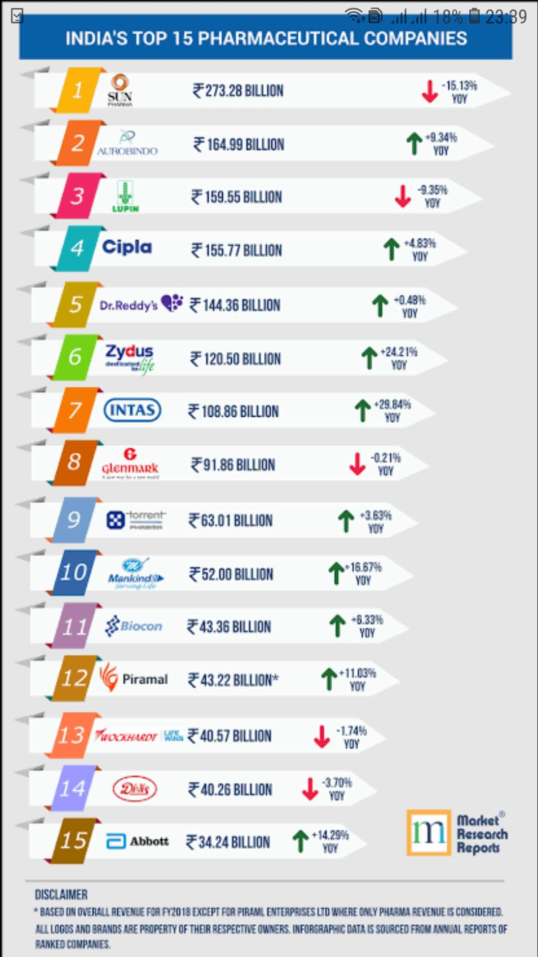 Irony is India's public sector drug/pharma company IDPL or Indian Drugs and Pharmaceuticals Limited (HQ: Gurugram, founded : 1961) didn't even feature in top 15.